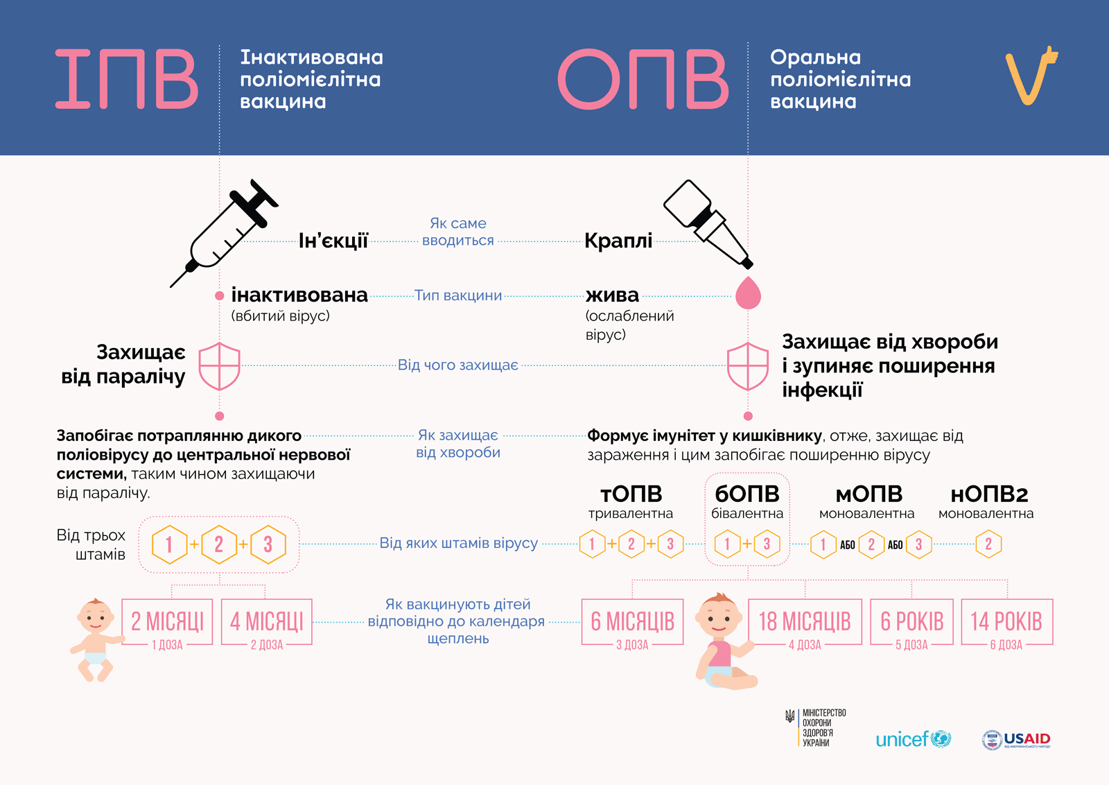 Вакцини від поліо. У чому різниця між ОПВ і ІПВ?